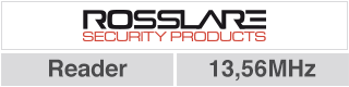 Rosslare, Square CSN Select reader including keypad. 89,5x88,9x18,25mm Dimensions (HxWxD). Reads 13.56MHz, e.g. Mifare serial numbers, iClass and NFC.
