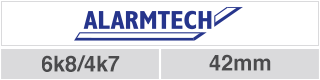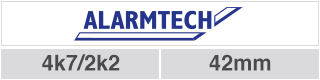 Contacto magnético de superficie Alarmtech Alu, resistencias incorporadas 4k7/2k2 (paralelo/serie), distancia de operación 42mm, dimensiones del contacto: 74x25x15mm, imán: 74x25x15mm, longitud del cable 6m con protección de cable de acero inoxidable de 1m.