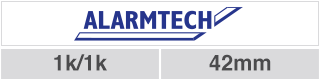 Alarmtech contact magnétique de surface Alu, résistance 1k/1k (parallèle/série) intégrée, distance de fonctionnement 42mm, dimensions contact : 74x25x15mm, aimant : 74x25x15mm, longueur de câble 6m et une protection de câble en acier inoxydable de 1m de long.