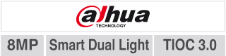 Dahua, WizSense TIOC 3.0 Cámara de torreta inteligente de 8 MP con doble iluminación y disuasión activa, SMD 4.0, AI SSA, Quick Pick, Smart Search, AcuPick, codificación AI, triple transmisión ABR H.264/H.265, 25 fps a 8 MP), WDR (120 dB), D/N, lente de 2,8 mm, iluminación infrarroja y blanca (máx. 30 m) conmutada por objeto, alarma de flash rojo y azul, alarma de altavoz/sirena, PoE, 12 VCC, IP67, versión en negro