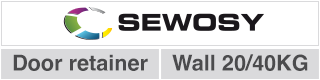 Sewosy VMPO242/484M aimant de porte avec bouton de verrouillage, montage mural. Adapté pour monter sur une porte coupe feu, 24Vdc 20daN / 48Vdc 40 daN. Comprend une plaque polaire articulée.