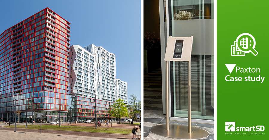 Paxton voorziet de toegangscontrole en deurintercom bij Calypso Rotterdam. De Calypso is een spectaculair en kleurrijk complex, dat ruimte biedt aan 408 woningen, kantoren, winkels en een parkeergarage.