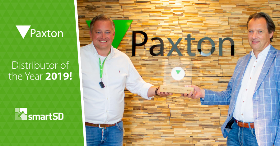 SmartSD is door Paxton gekozen tot Distributor of the Year 2019. SmartSD is distributeur van de Paxton toegangscontrole en deurintercomsystemen. Jaarlijks wordt de “Distributor of the Year “ award door Paxton Benelux uitgereikt aan de distributeur die een mooie groei weet te realiseren, excellente support geeft en de Paxton producten snel uit voorraad kan leveren.